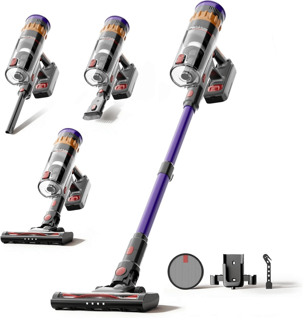 Avec sa puissance d’aspiration impressionnante de 40 000 Pa, il élimine sans effort les poils d’animaux, poussières incrustées et saletés tenaces sur tous les types de sols : parquet, carrelage, tapis et même les fissures. Sa batterie offre jusqu’à 42 minutes d’autonomie, largement suffisante pour nettoyer une maison d’environ 70 m². Vous apprécierez sa filtration haute efficacité à 99,99 % et sa brosse anti enchevêtrement en forme de V, parfaits contre les poils de chiens ou chats. L’écran LED intelligent permet de suivre l’état de l’appareil en temps réel pour un nettoyage simple et efficace. Vous aimerez aussi ses accessoires, pratiques pour enlever facilement les poils de chien !