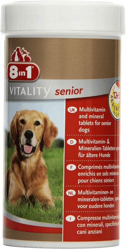 Le complément alimentaires multivitamines 8 en 1 de Vitality Senior est affiché à – 44 %. Le prix est de 8,54 € au lieu de 15,29 € pour 70 comprimés. La posologie et de 2 comprimés par jour pour un chien de 20 kg donc la cure dure 35 jours. Ca vaut carrément le coup si on en croit les avis clients ! Les propriétaires de chien senior sont unanimes : leur poilu pète le feu et retrouve de l’énergie et de la vitalité après seulement quelques semaines.