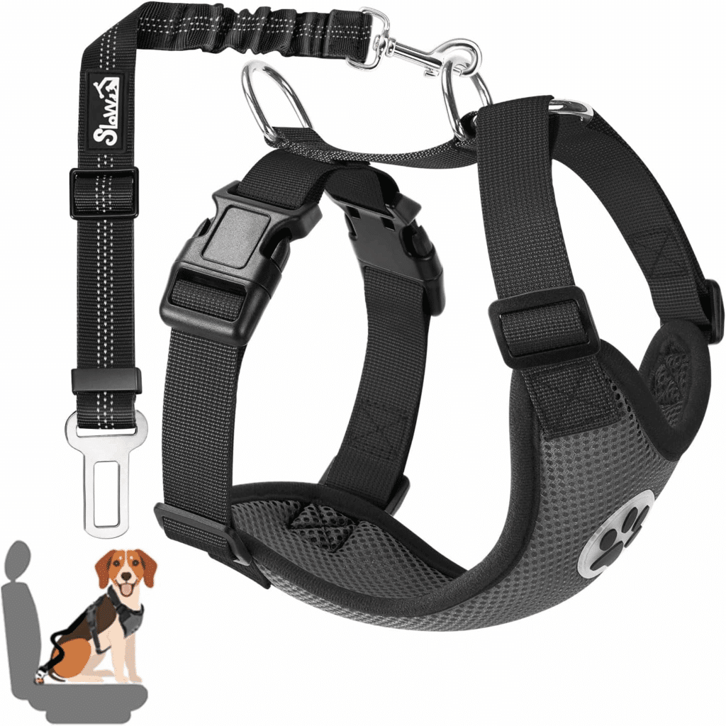 Muni d’une ceinture de sécurité extensible, le harnais de voiture pour chien maintient ton poilu sur la banquette arrière. Il s’adapte parfaitement à un chien stressé en voiture et agité.